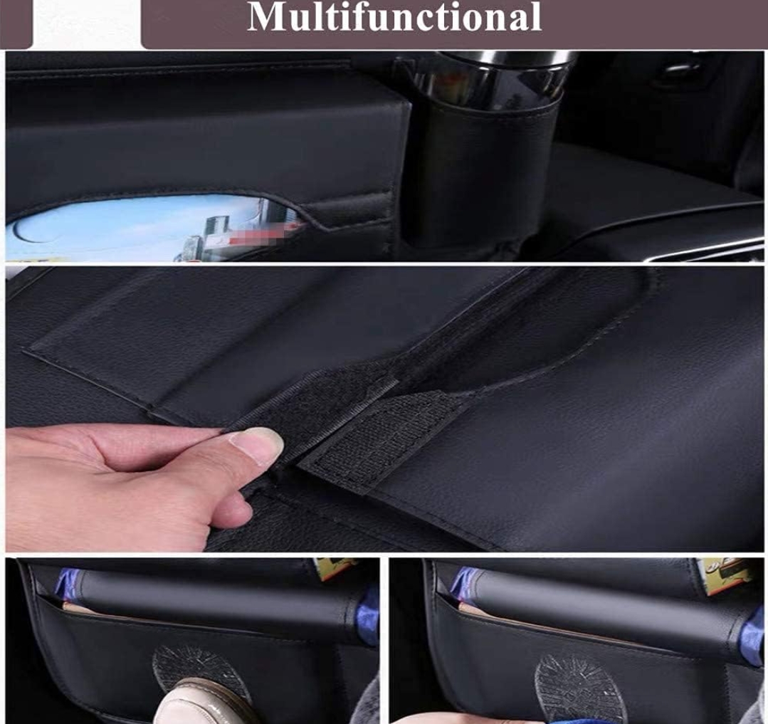 سازماندهی صندلی ماشین و فضای ذخیره سازی با طراحی چند جیب ارائه می شود، شامل 1 عدد جعبه دستمال کاغذی، 1 عدد جیب چتر، 2 عدد جای لیوان آب، 2 عدد جیب تلفن، 2 عدد جیب که برای تبلت شما طراحی شده است. سازماندهی پشتی صندلی خودرو ساخته شده از مواد چرمی ضد آب، فقط باید با یک پارچه مرطوب تمیز شود که بسیار راحت است. و این سازمان دهنده صندلی عقب خودرو به راحتی نصب می شود، شما می توانید نصب را در 3 دقیقه کامل کنید.